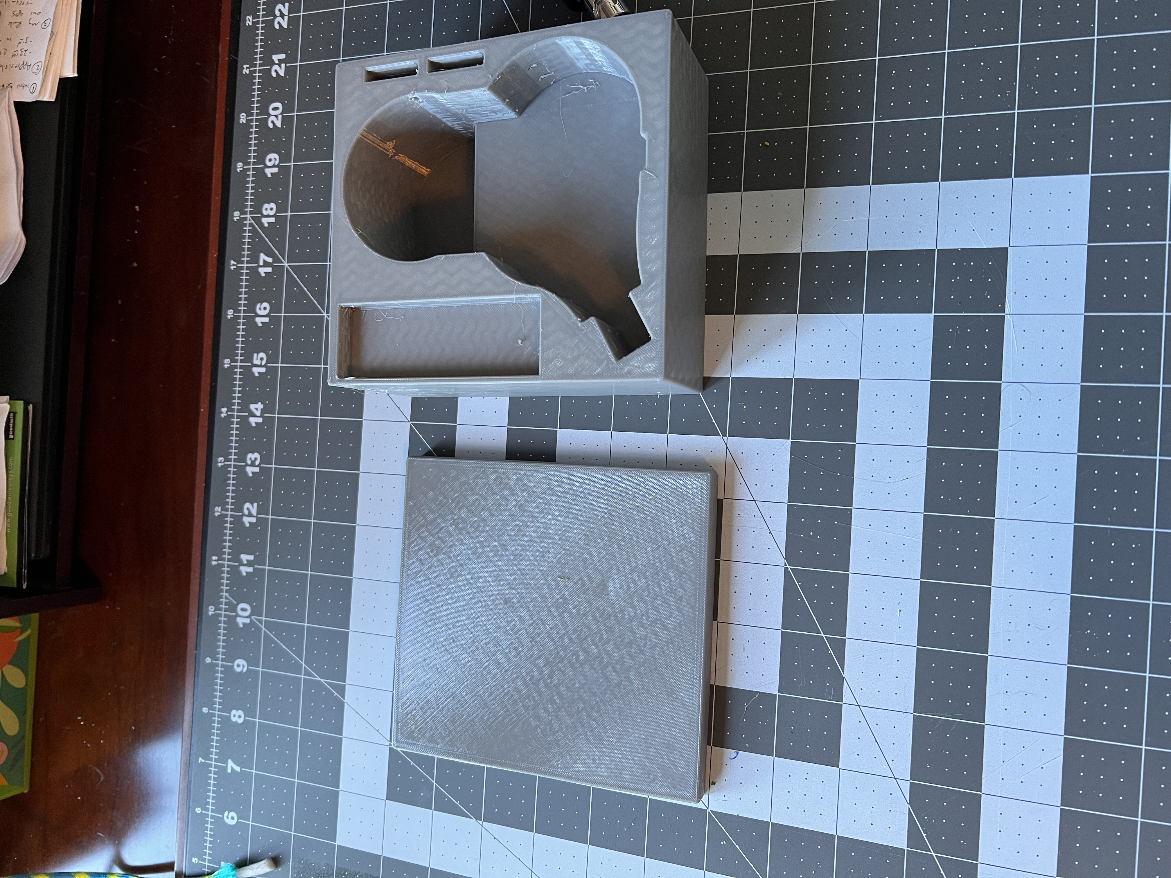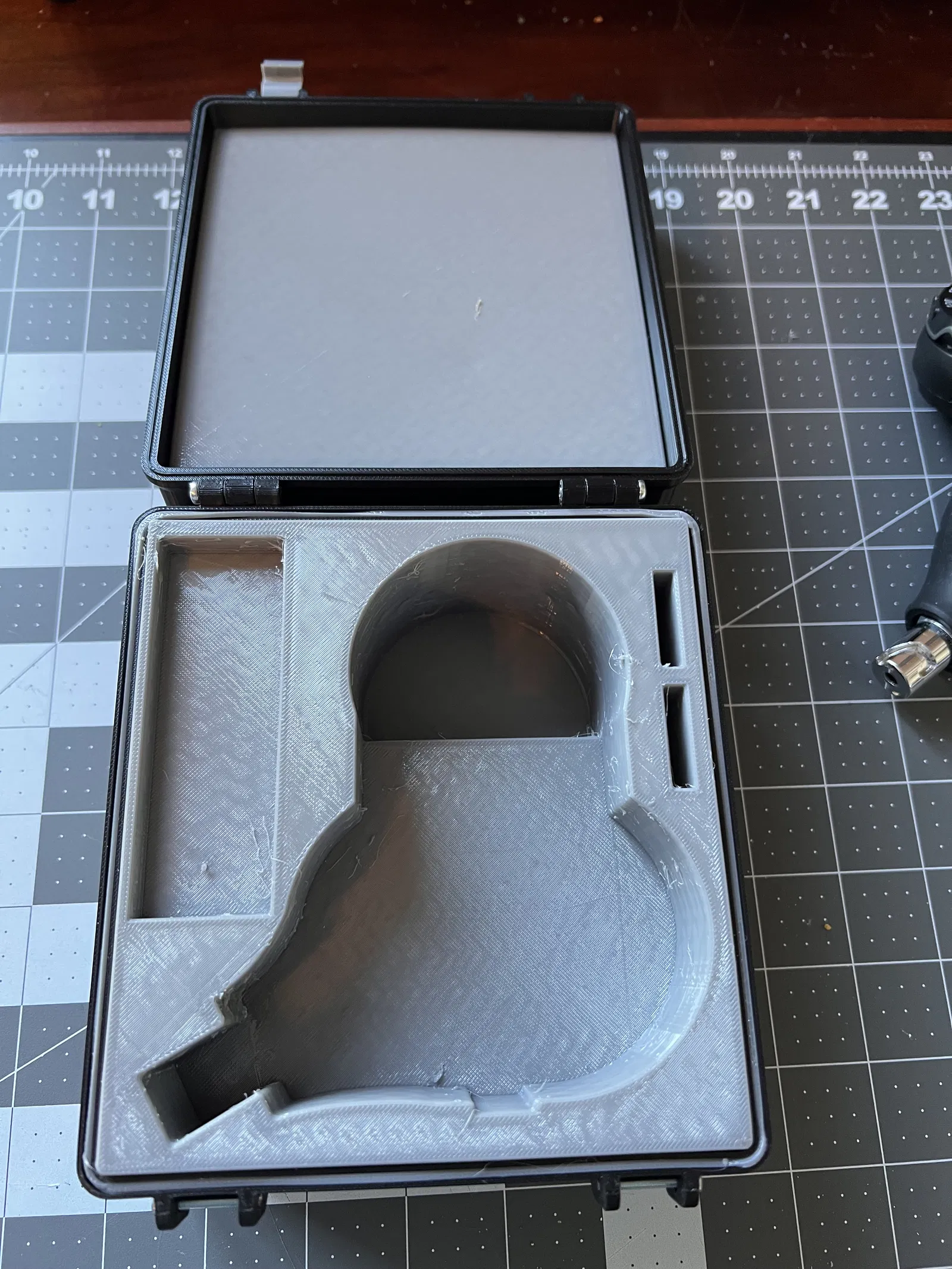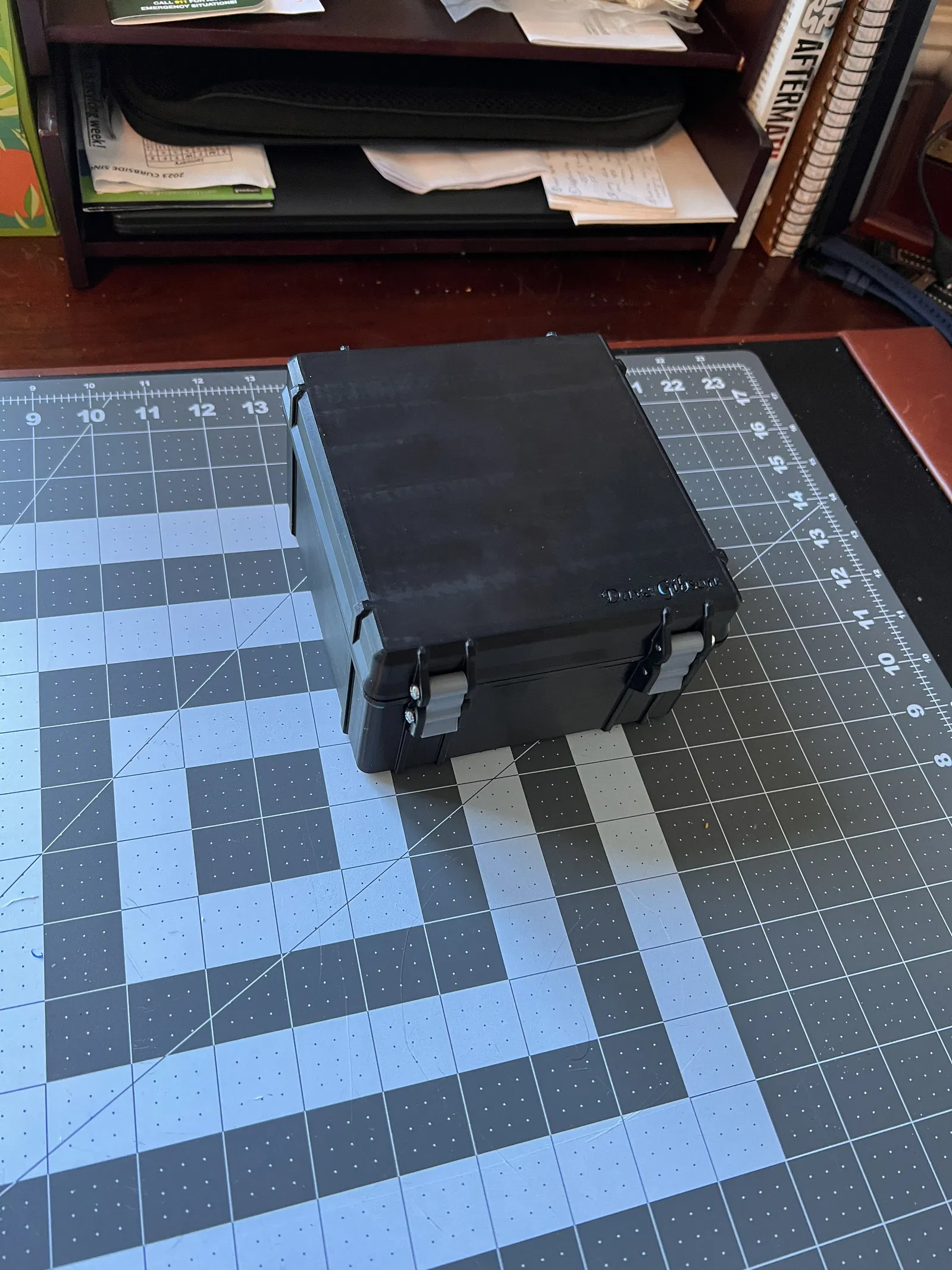 Thiết kế dựa trên mẫu “Rugged Box (Parametric)” của Whity, mẫu này lại dựa trên “Tool box parametric” của Yanev và cung cấp nhiều tùy chọn hơn để tùy chỉnh trong Fusion 360. Parametric Box được đặt ở kích thước 145 x 135 mm, với đáy cao 60mm và nắp cao 20mm. Đã tạo ra các miếng chèn Nắp và Đáy để hỗ trợ cho máy tính lặn Aqualung i550C. In bằng vật liệu TPU của hãng Bambu, Chiều cao lớp = .25, Số vòng thành = 1, Số lớp vỏ trên = 2, Số lớp vỏ dưới = 1, 10% độ đặc ruột và kiểu lưới Gyroid.