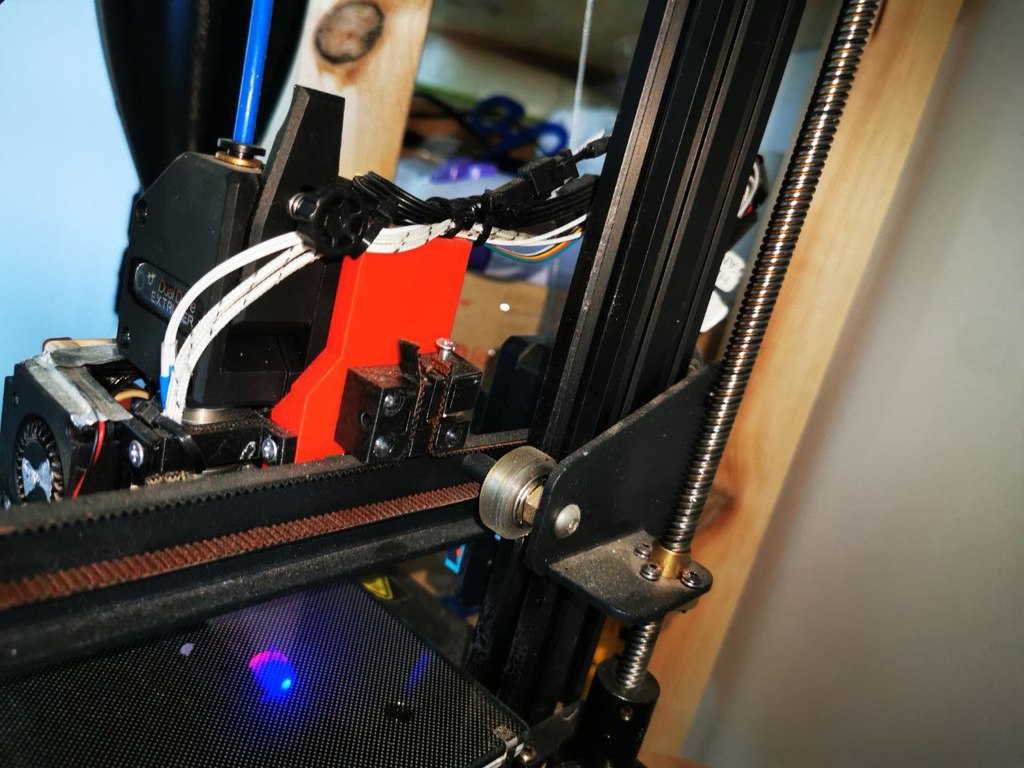 Hầu hết các bộ phận đều được in bằng nhựa ABS. Vì lý do nào đó mà bộ căng dây đai in bằng PETG tốt hơn và tôi khuyên bạn nên dùng chiều cao lớp dưới 0.2mm.