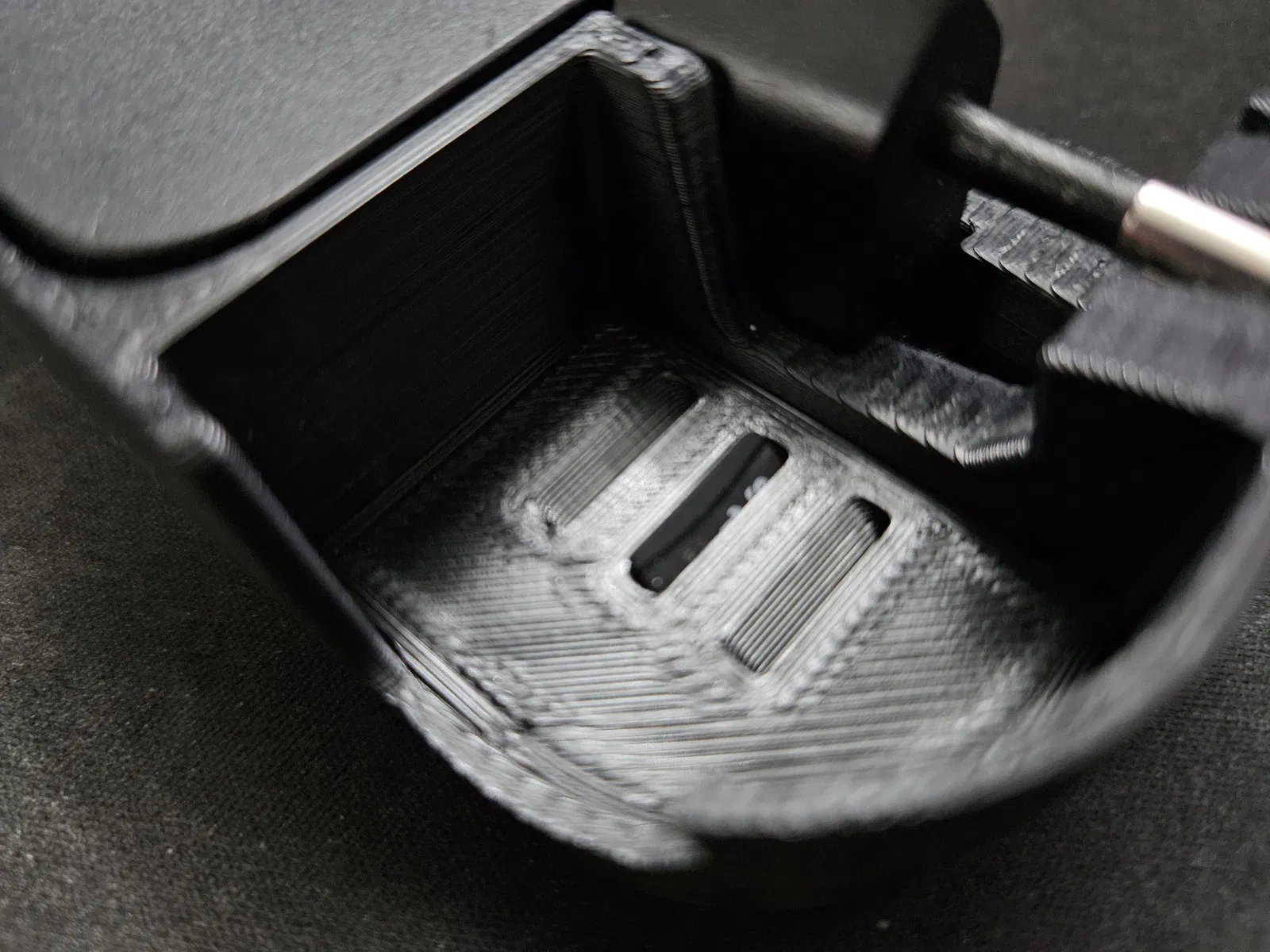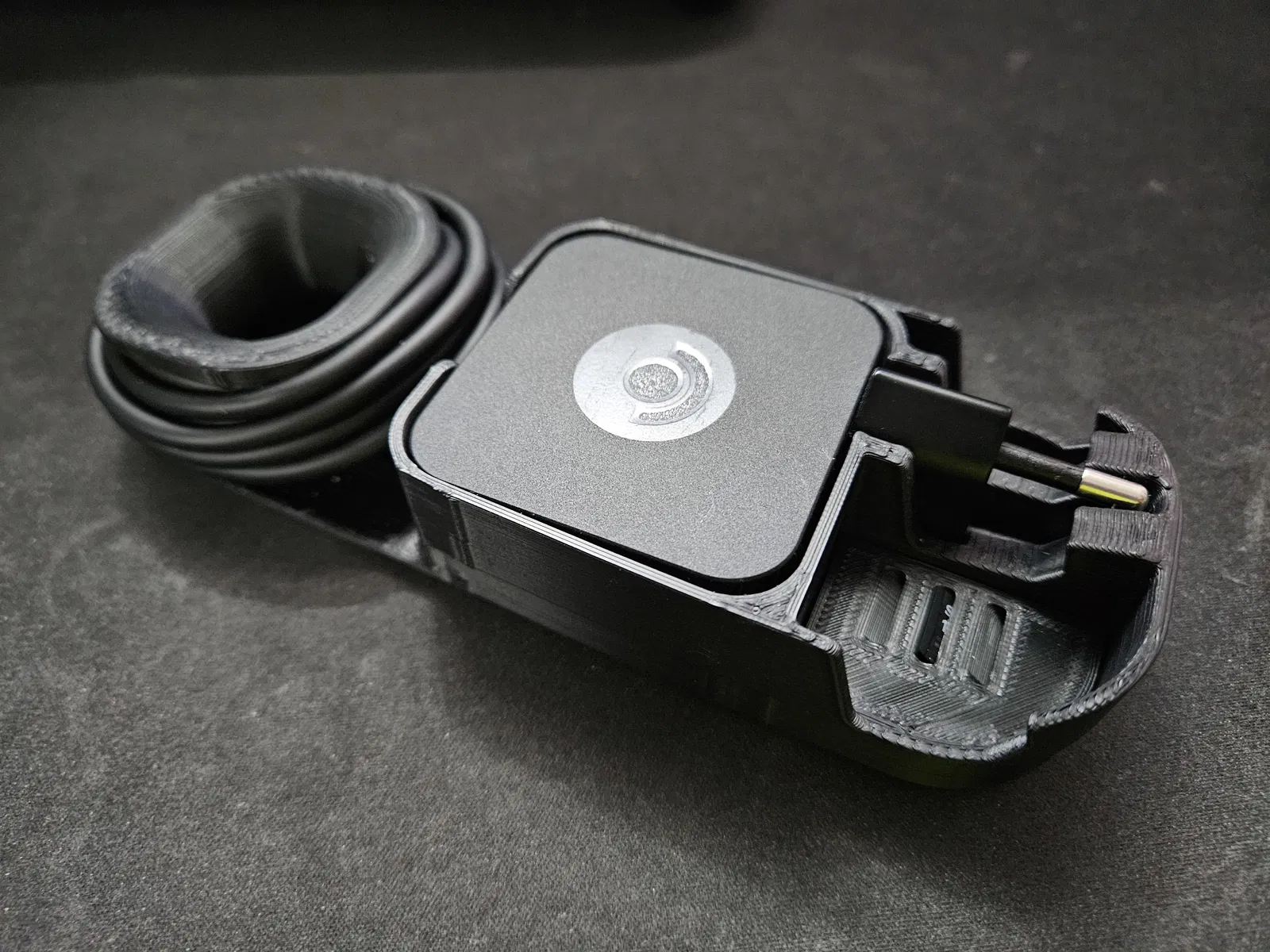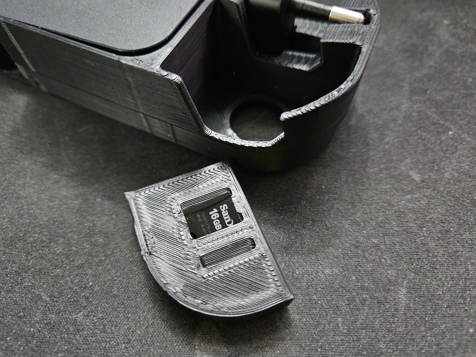 Một bộ phận chèn vào hộp đựng Steam Deck để giữ sạc một cách ngăn nắp. Ngoài ra còn có một bản in bổ sung để giữ 3 thẻ MicroSD. Và nó cũng có thể được sử dụng như một giá đỡ cho Deck.