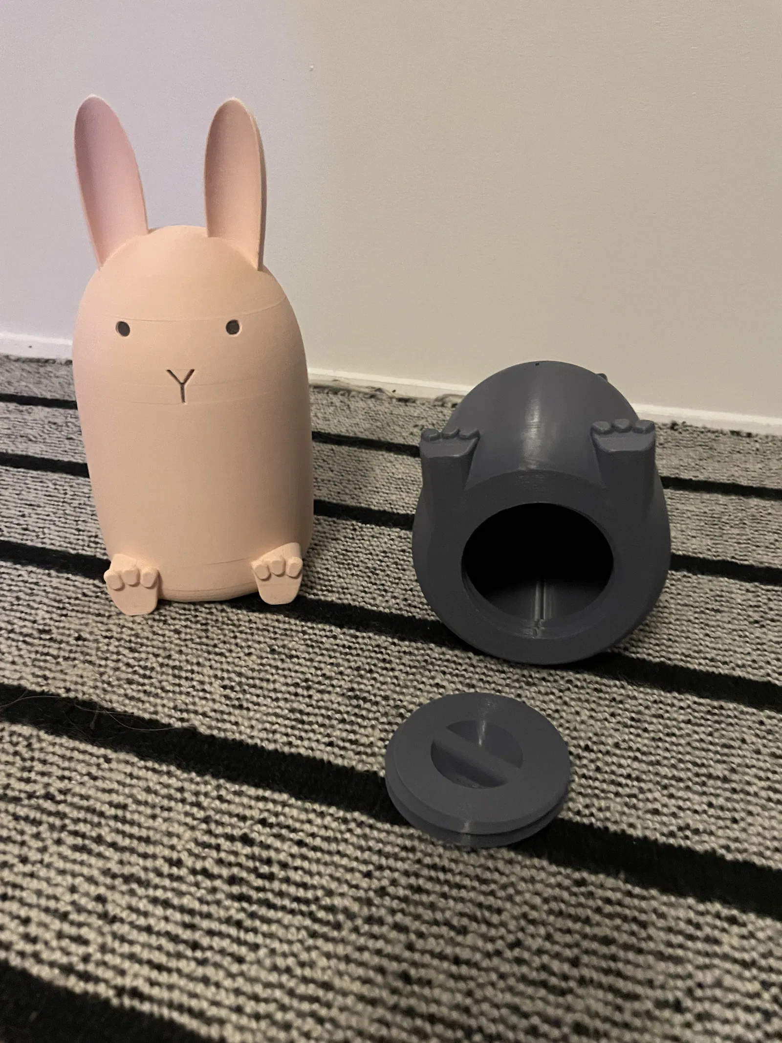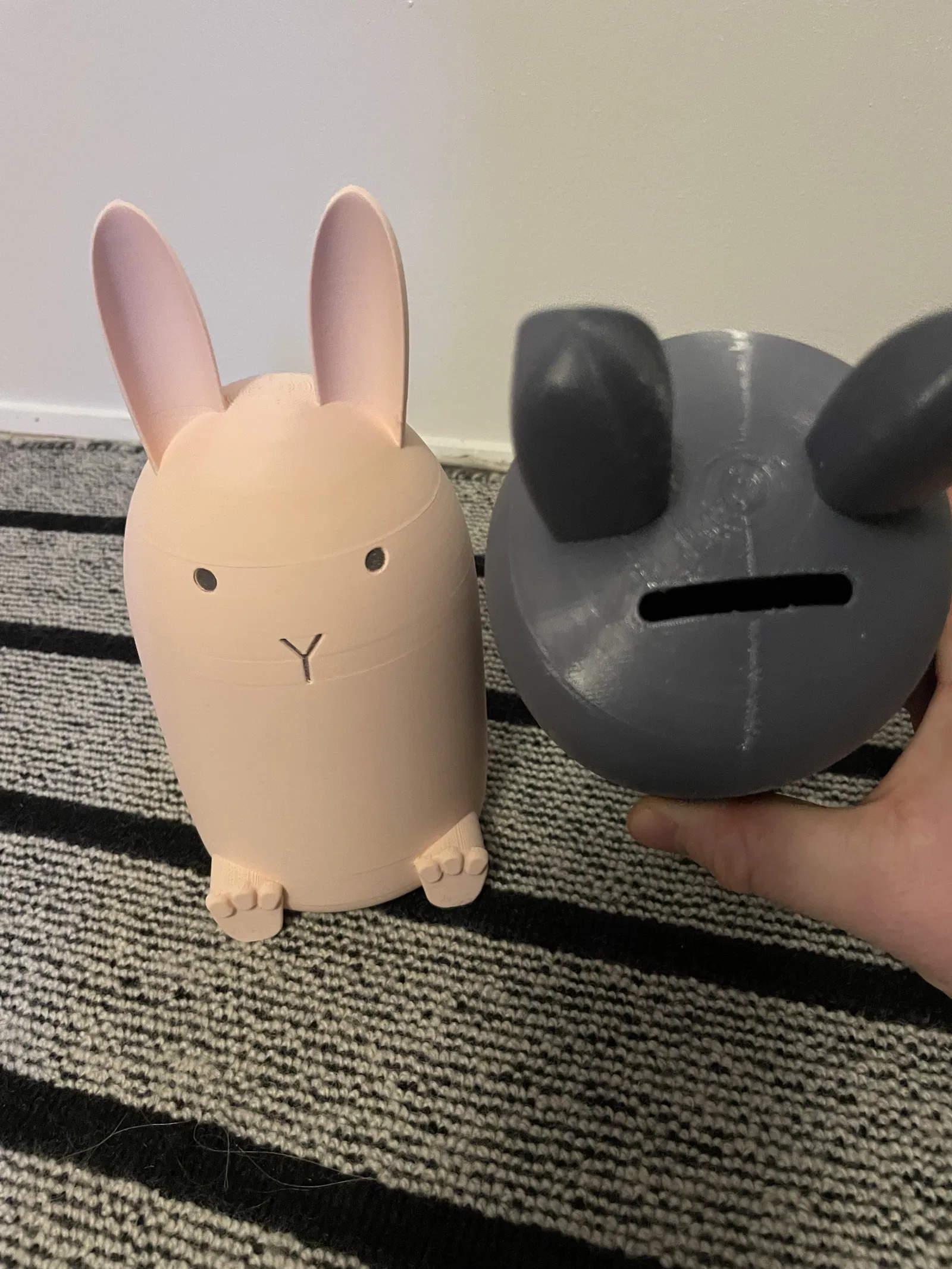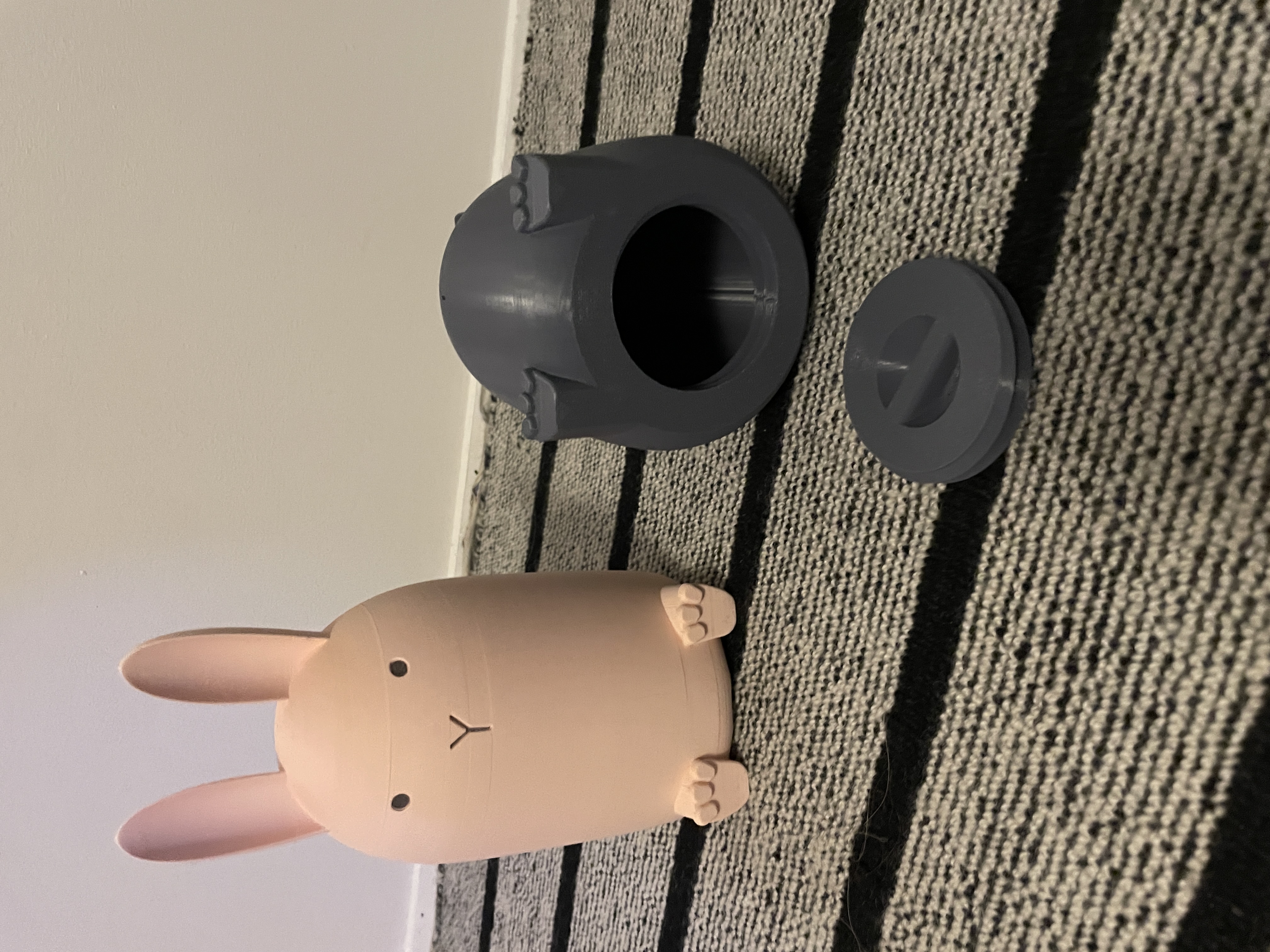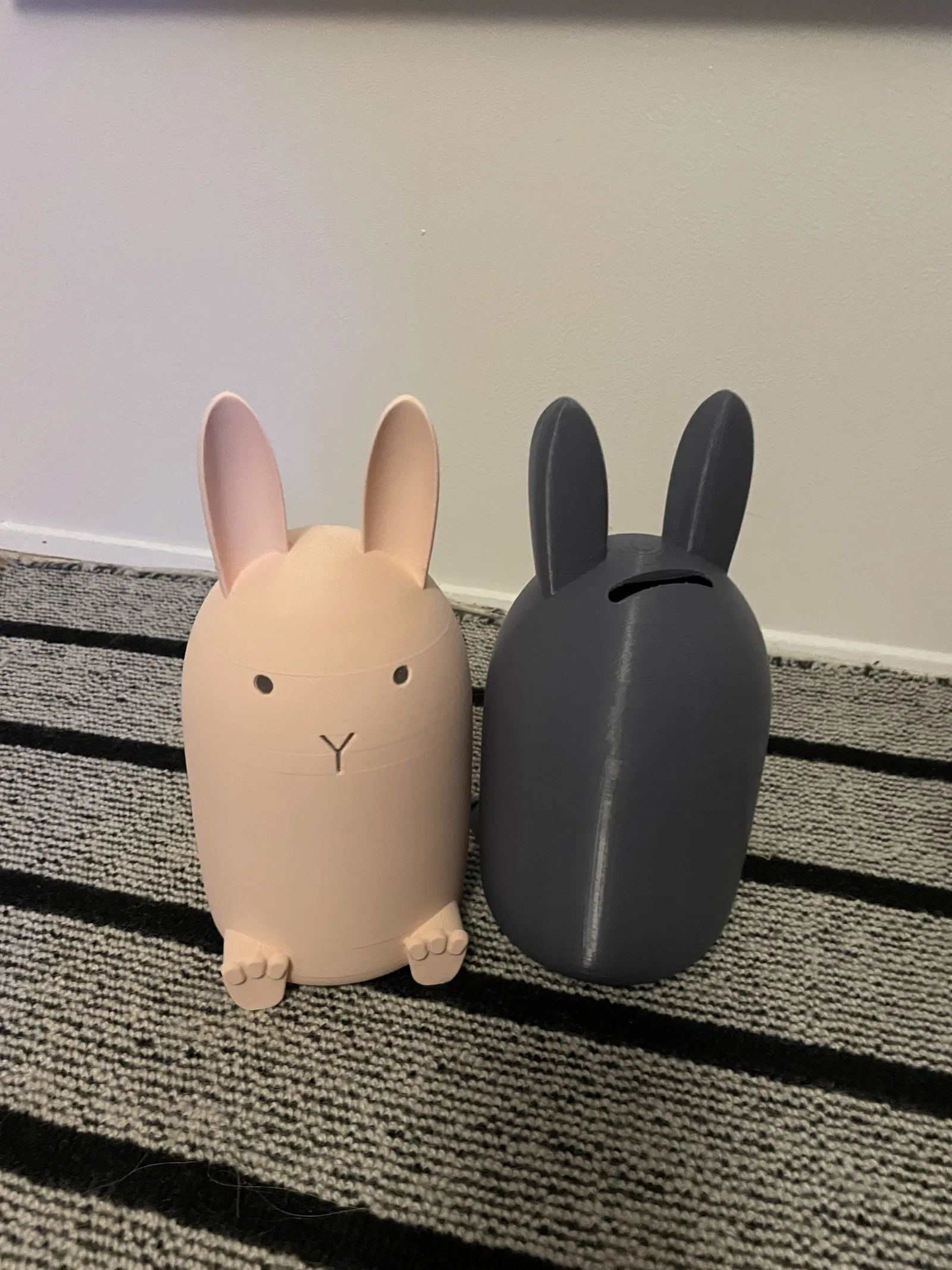 Ống heo thiết kế hình chú thỏ ngộ nghĩnh, có thể tô màu mắt, miệng tùy thích. Phiên bản cập nhật có nắp đậy chắc chắn hơn, là món quà độc đáo cho bé hoặc dùng để trang trí.