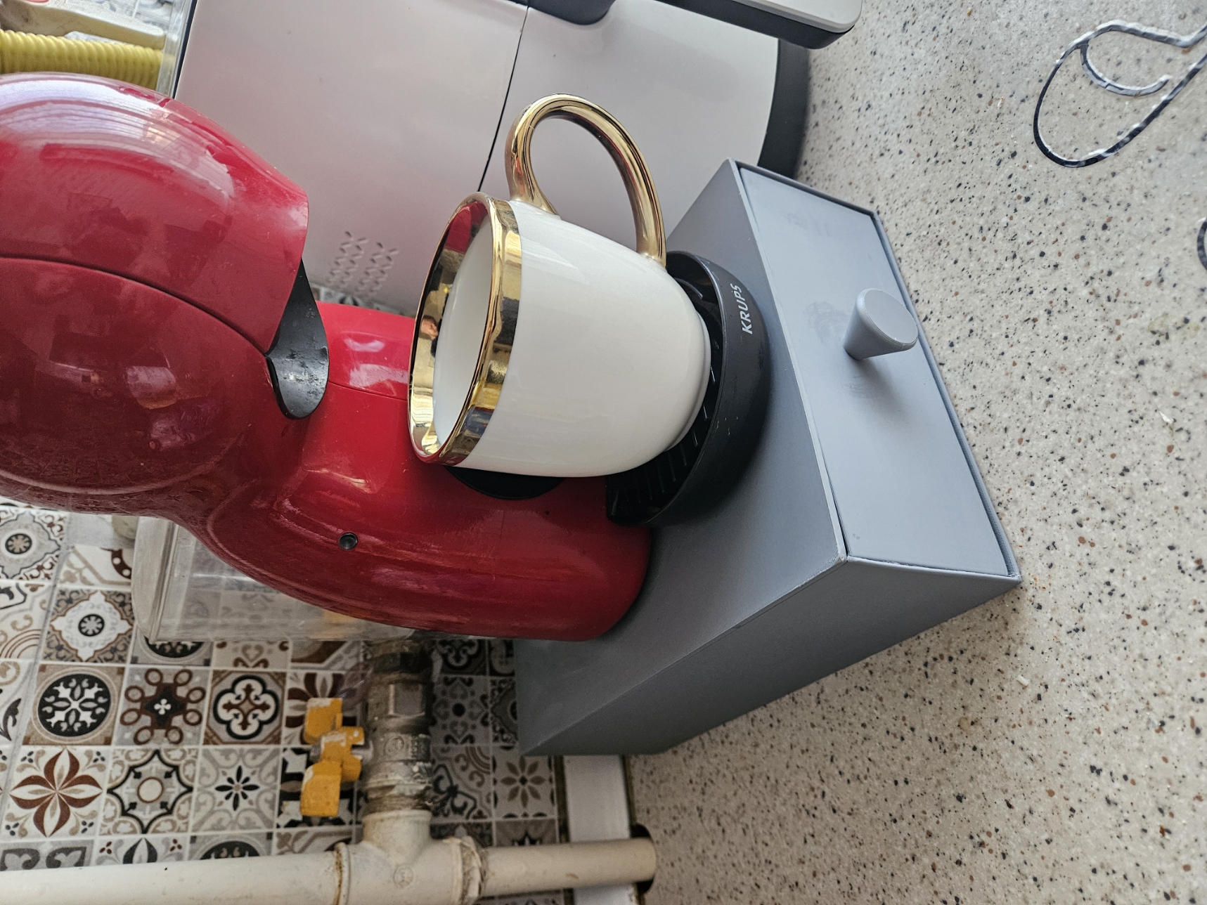 Cái đế đựng máy pha cà phê Nescafe Dolce Gusto có ngăn kéo để đựng viên nang cà phê. Tôi khuyên bạn nên dùng vật liệu chịu lực tốt hơn, ren 100% trên nắp.