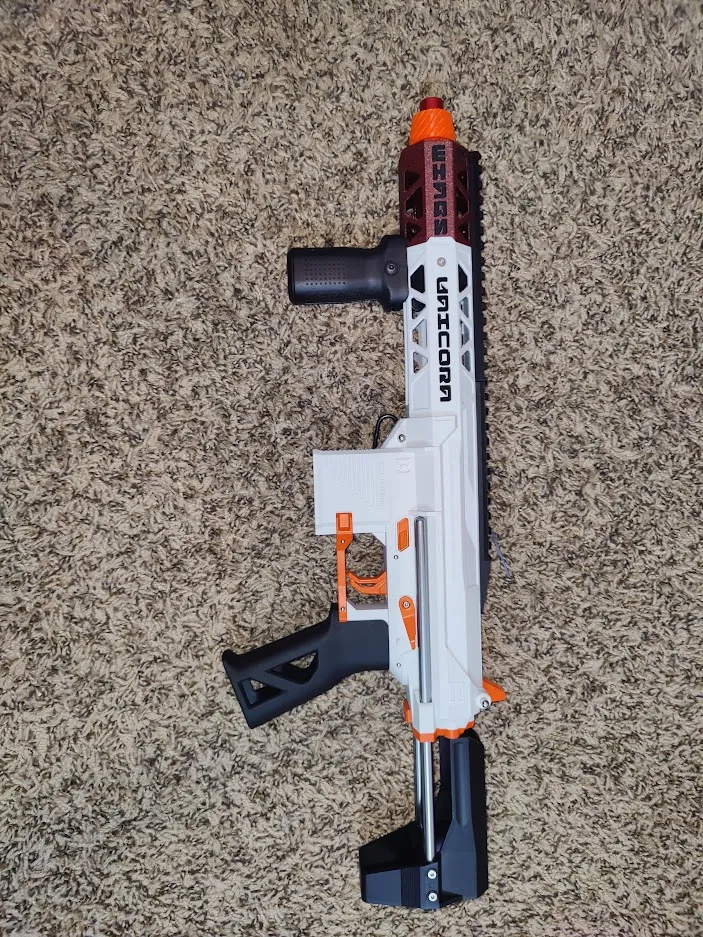 Đây là một bộ thay thế hoàn toàn cho phần trước của XYL KM9 Unicorn. Bộ sản phẩm bao gồm một phần trước, một Collet nòng, và một Ray Picatinny mở rộng. Để gắn phần trước, chỉ cần tháo các ốc vít từ phần trước gốc và đẩy phần thay thế vào. Sau đó, vặn các ốc vít lại và siết chặt Collet. Để gắn Picatinny, sử dụng 2x M3x6mm SHCS qua các lỗ trên Picatinny. Tôi đã bao gồm một mô hình để in đa màu, như thấy trong các bức ảnh. Nếu bạn muốn sử dụng nòng gốc với phần trước này, vui lòng sử dụng Collet chiều dài nòng gốc đi kèm, có nòng SCAR Trivictus tích hợp của Thanacles. Bạn có thể mua sản phẩm này từ OOD tại đây: