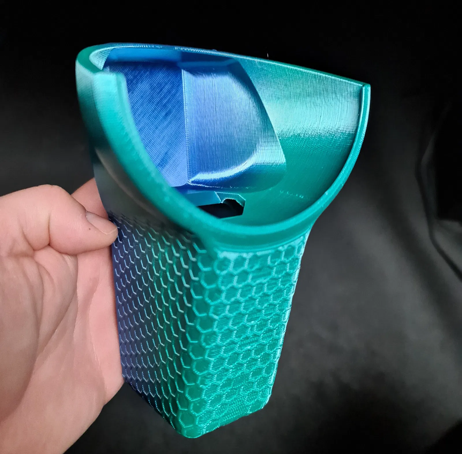 Tui làm cái đế gắn cho Amazon Echo Pop, in không cần support. Vị trí gắn Echo Pop nằm phía trên cục adapter nguồn, nên nếu ổ cắm có công tắc ngay phía trên thì có thể sẽ không vừa. Nên in bằng PETG để gắn khít hơn nha.