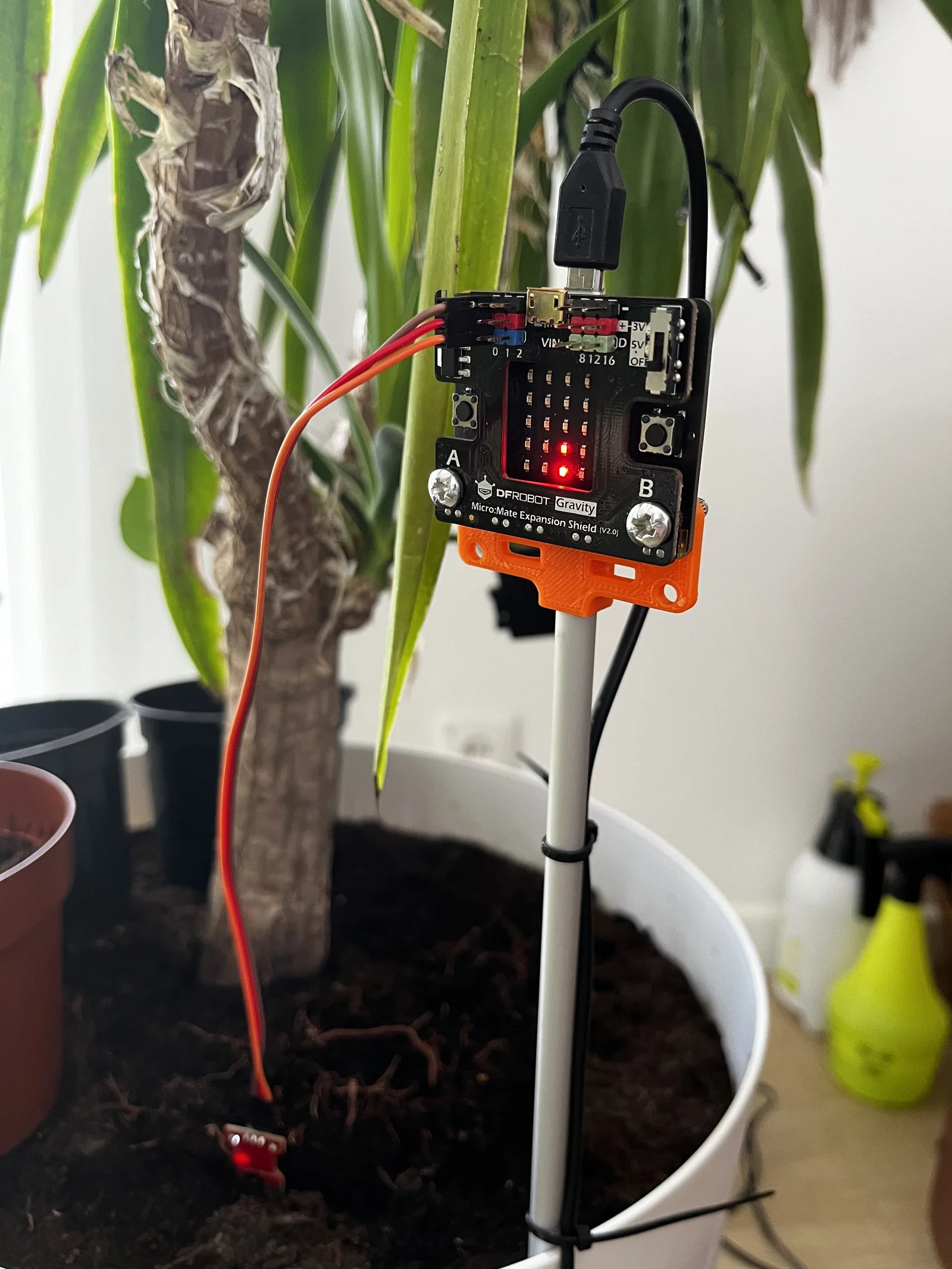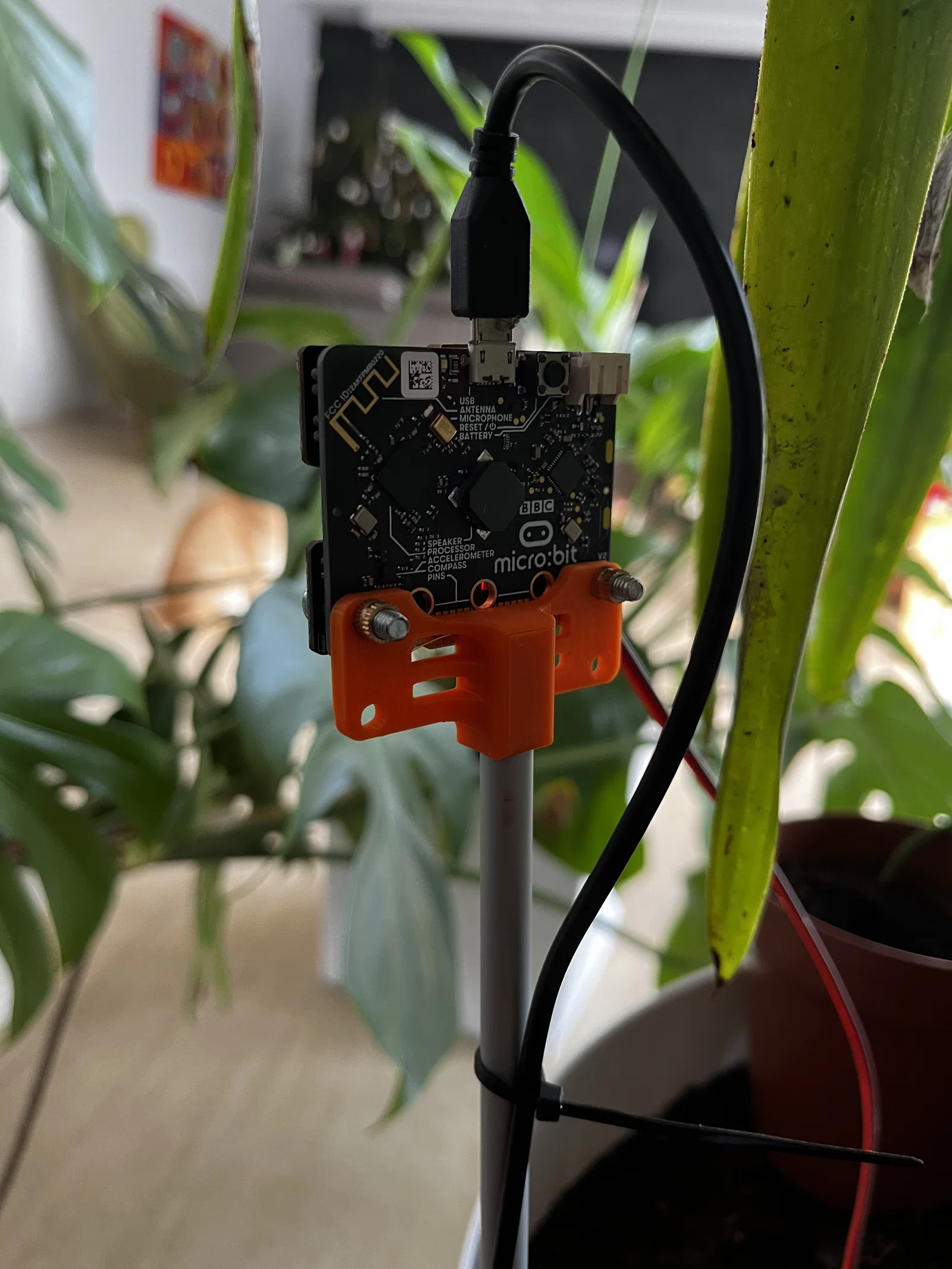 Giá đỡ Cảm biến Độ ẩm BBC micro:bit, được thiết kế để đặt micro:bit vào chậu cây. Đường kính ngoài của ống là 8mm, phù hợp để cắm vào đất.