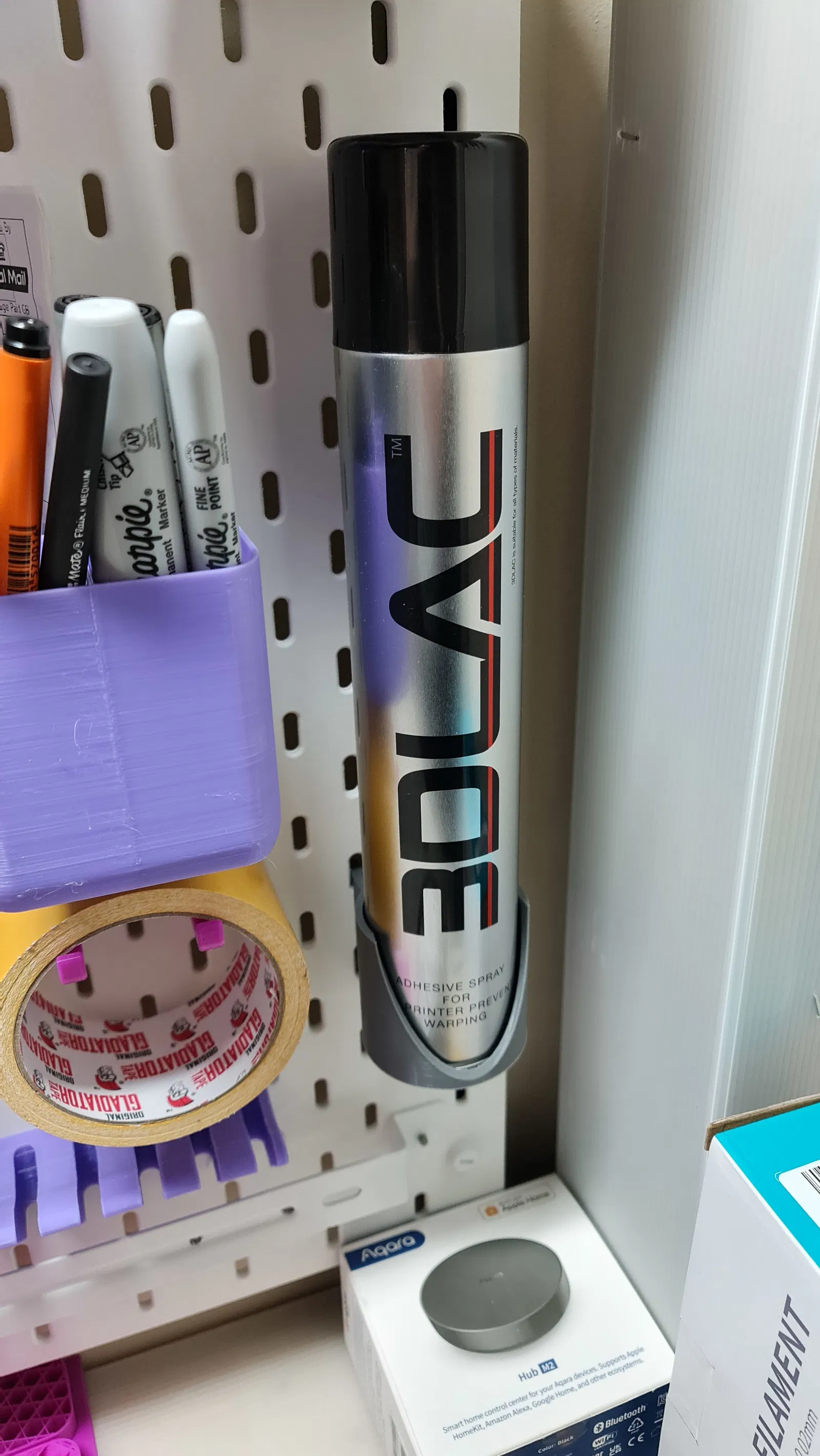 Chân đế này dùng để đựng bình xịt, với đường kính bên trong là 55mm và phần móc treo dày 4.6mm, rất phù hợp để treo lên bảng Ikea Skadis.