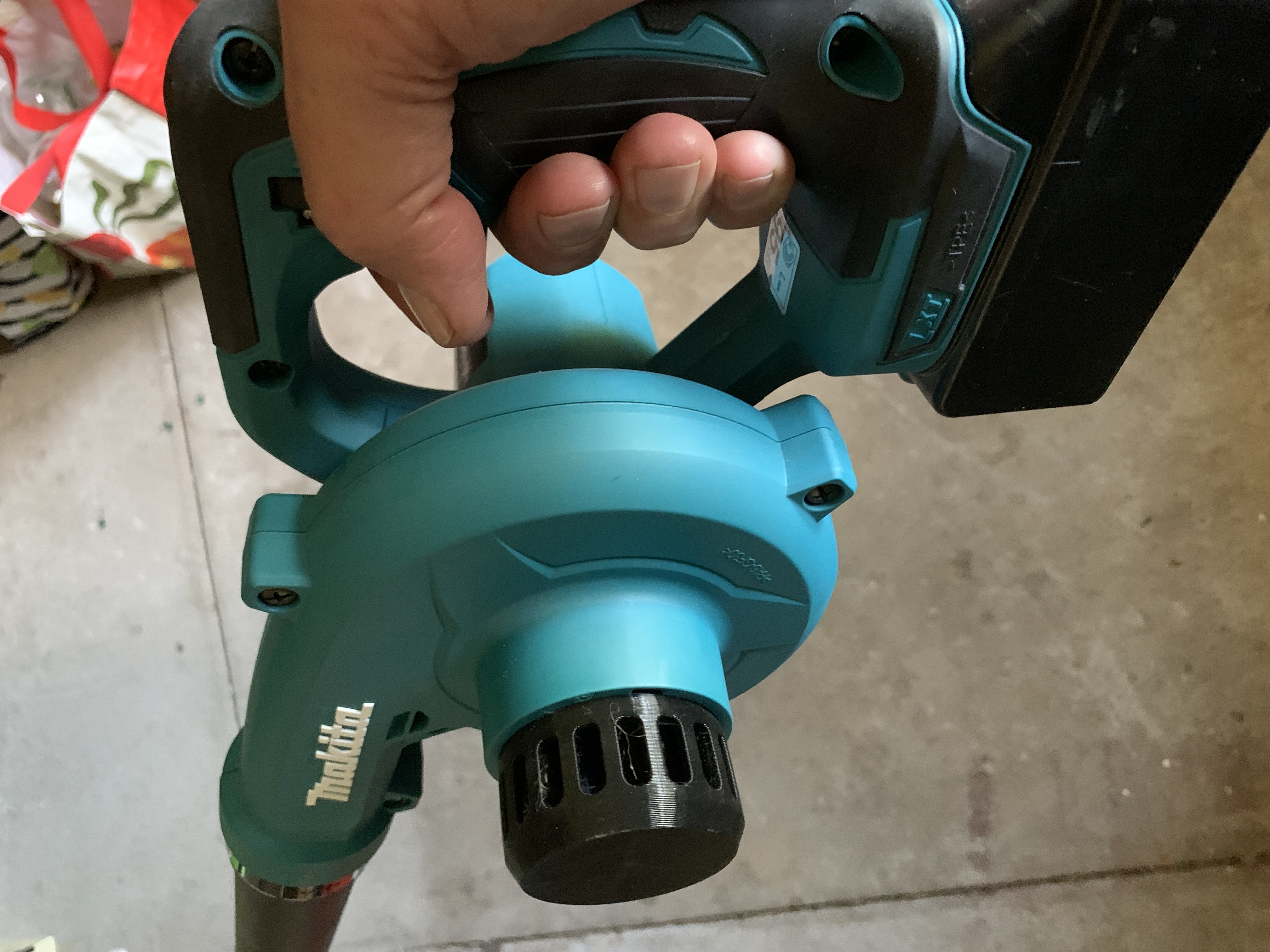 Cái máy thổi hơi Makita không dây của tui cứ hút vải quần của tui vô hoài lúc xài. Cái nắp xoay này gắn vừa vô cái cổng hút, giải quyết được vụ này luôn.
