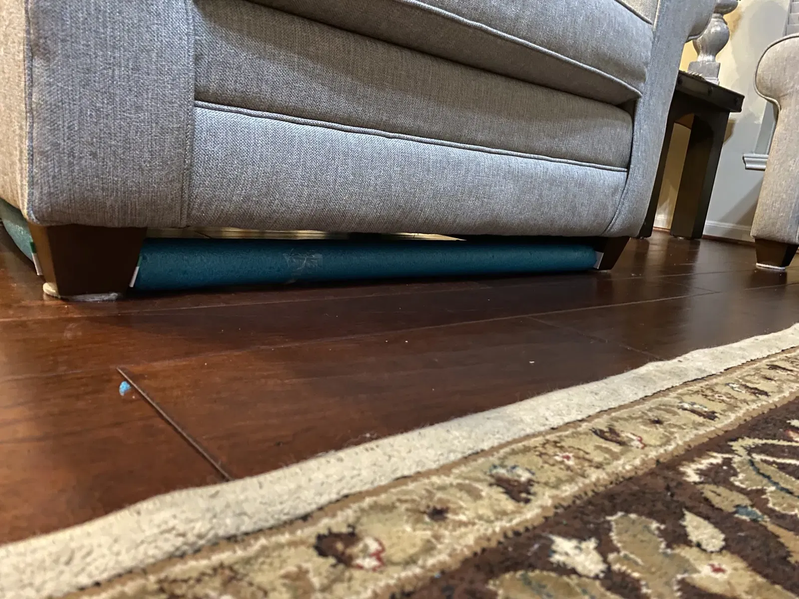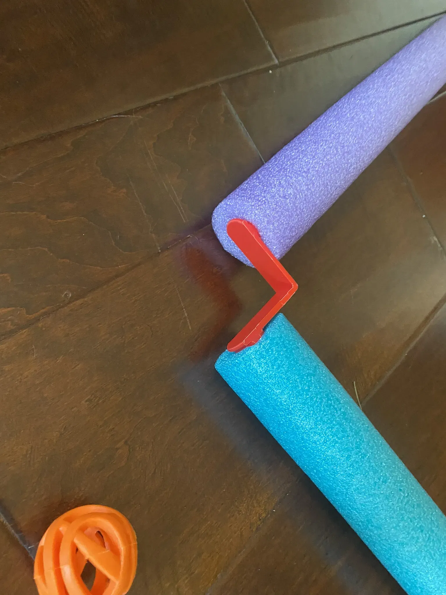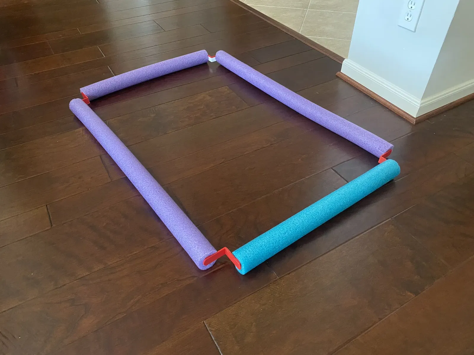 Rào cản được làm bằng mì hồ bơi để ngăn bóng và đồ chơi lăn dưới đồ nội thất.