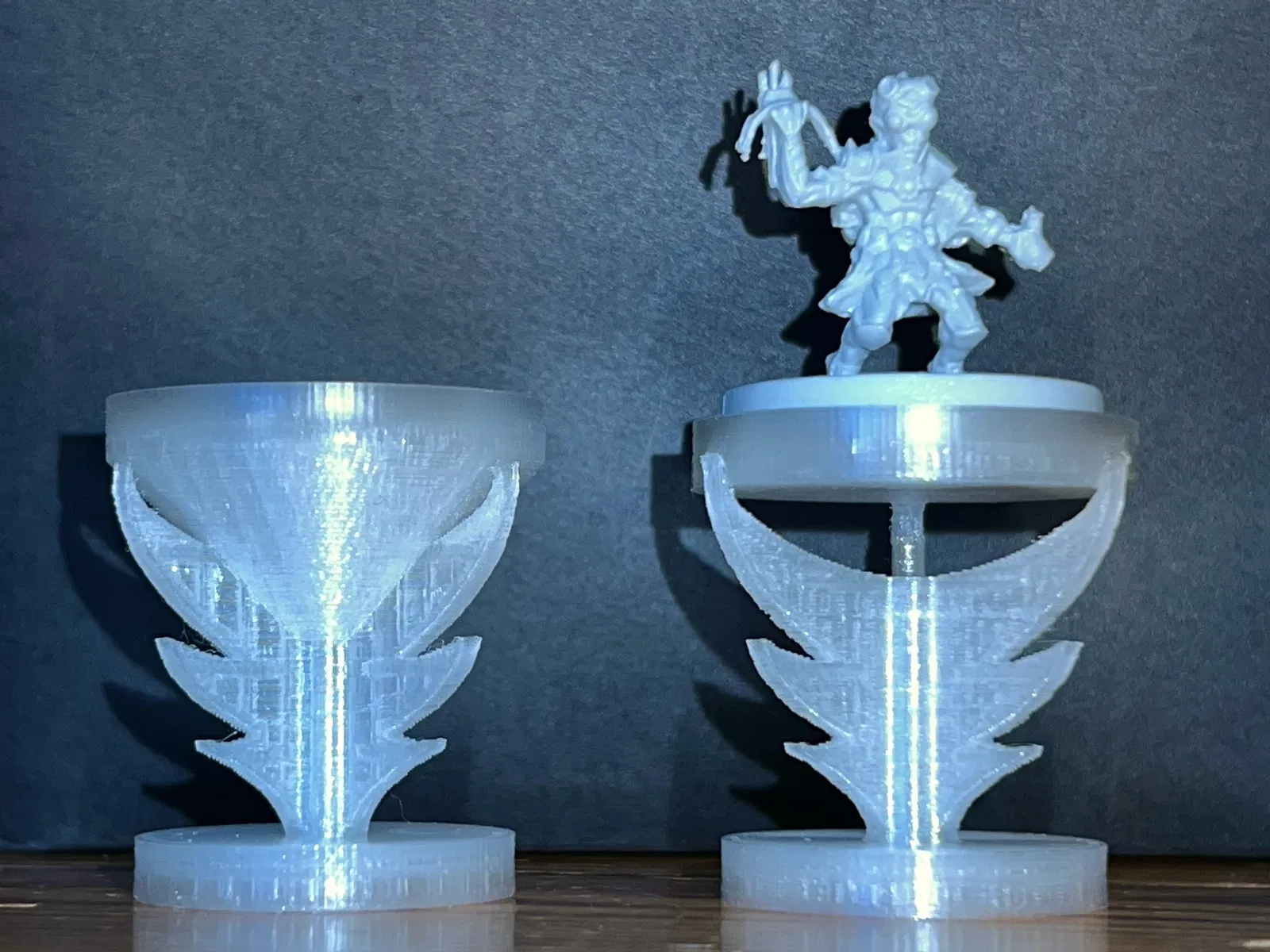 Hai mẫu thiết kế cho đế cắm để chỉ các quái vật bay và nhân vật người chơi trong board game nổi tiếng Gloomhaven. Chỉnh sửa: Nó cũng có thể được sử dụng cho Frosthaven.