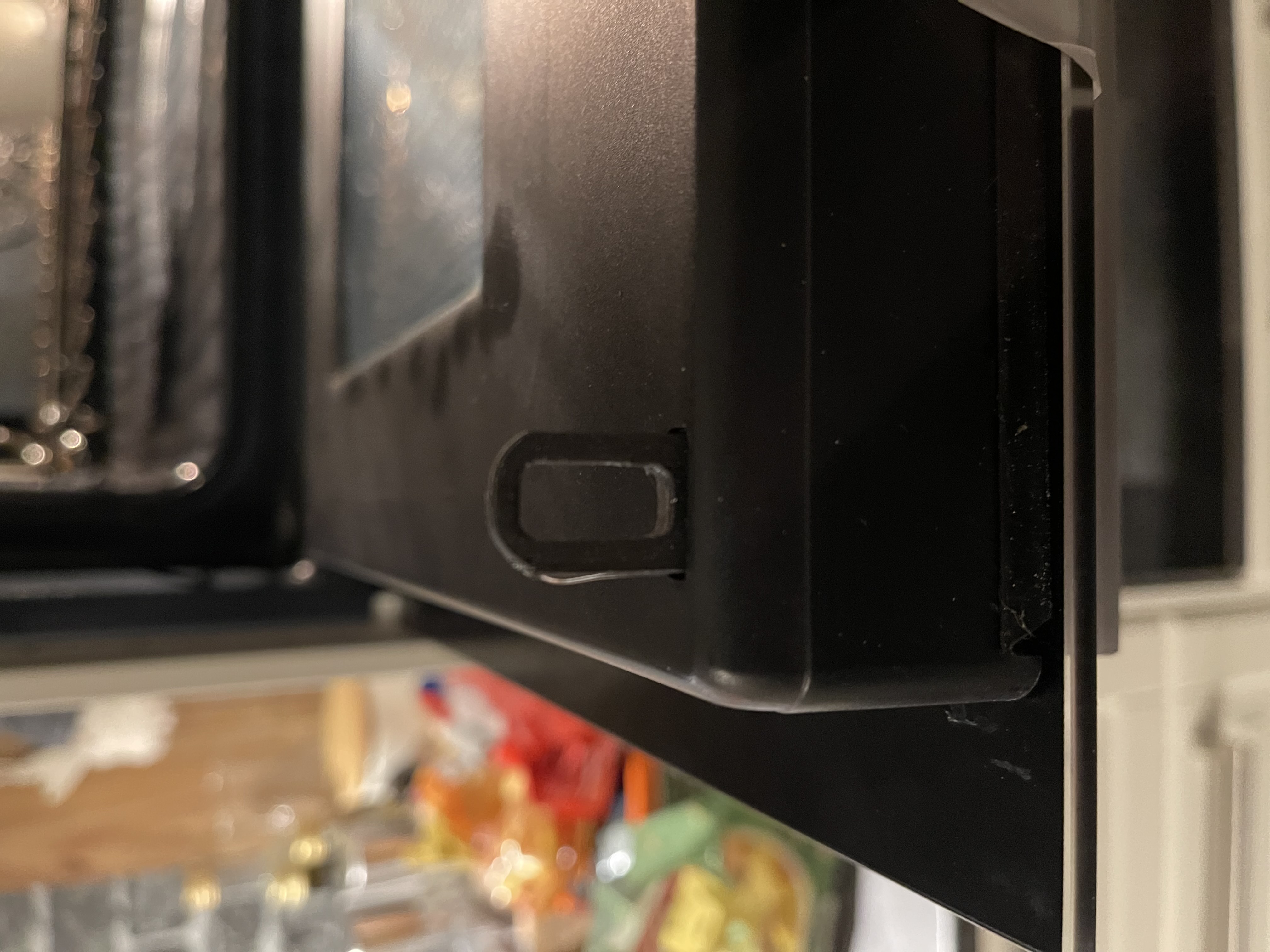 Cách thay thế, nới lỏng 2 ốc ở bản lề, nhấc các lẫy khóa lên, kéo nắp lò ra khỏi lò, nới lỏng 2 ốc cho phần vỏ nhựa, cưa bỏ phần bị gãy, dán lại bằng keo, ví dụ như keo nến.