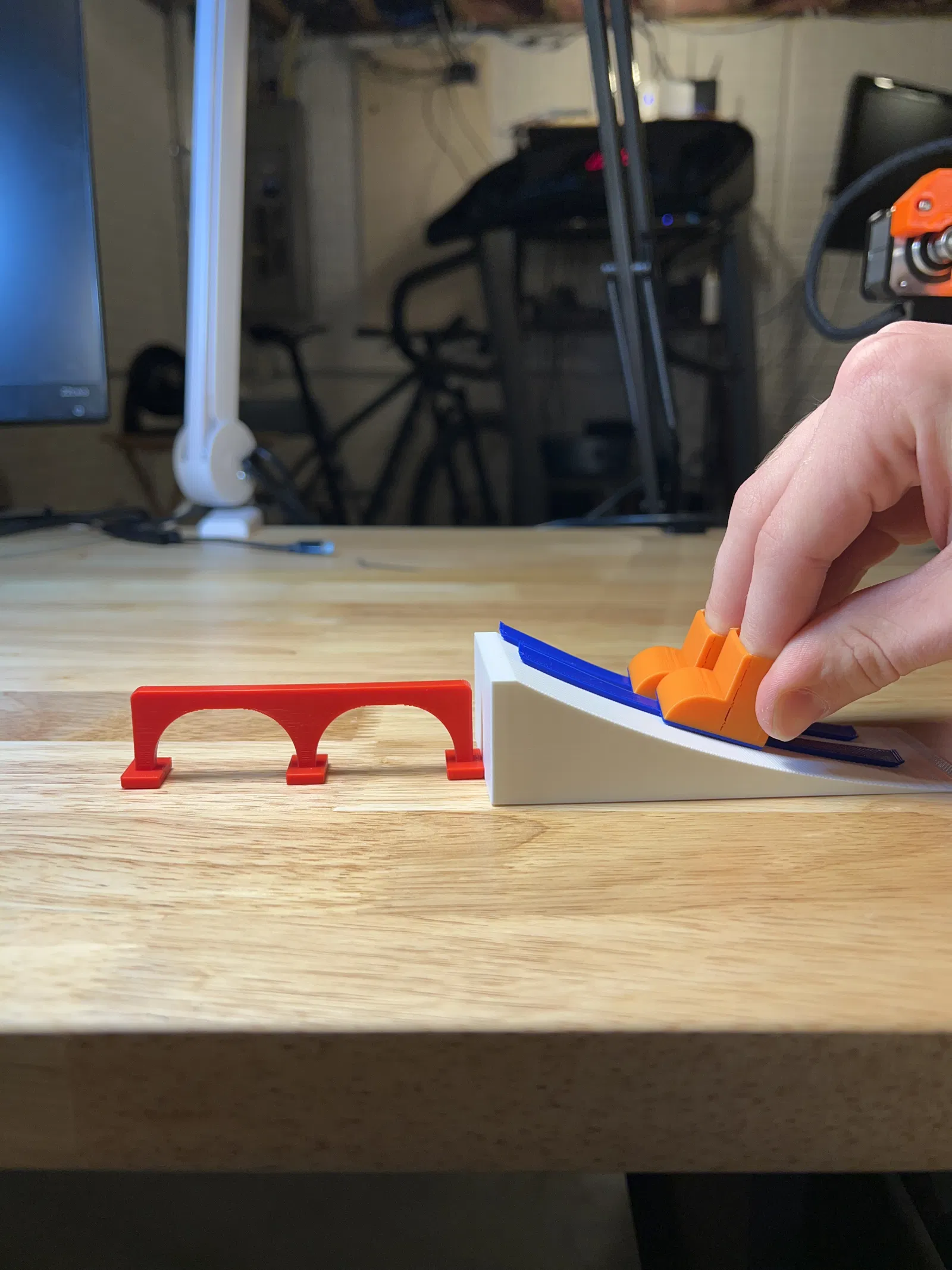 Nhớ in 2 file ván trượt nha. Có thể bạn sẽ cần chỉnh lại kích thước ván trượt cho vừa với ngón tay á (lỗ gốc là 12mm x 18mm). Nếu chỉnh kích thước ván trượt thì chỉnh cả cái dốc và thanh ray cũng được, nhưng không bắt buộc đâu.
