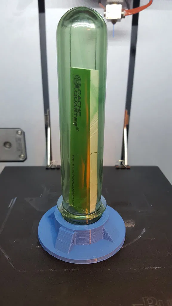 Dựa trên nắp PET của xavan, giá đỡ PETling này được tạo ra cho các cột ống tiêu chuẩn 60mm. Ưu điểm của đường kính 60mm là giá đỡ không cần phải dán vào nắp cột ống, mà có thể đặt đơn giản lên ống. Việc rơi ra là không thể với các cột ống tiêu chuẩn. In ra, vặn PETling cùng sổ ghi chép vào và giấu đi. Happy Caching!