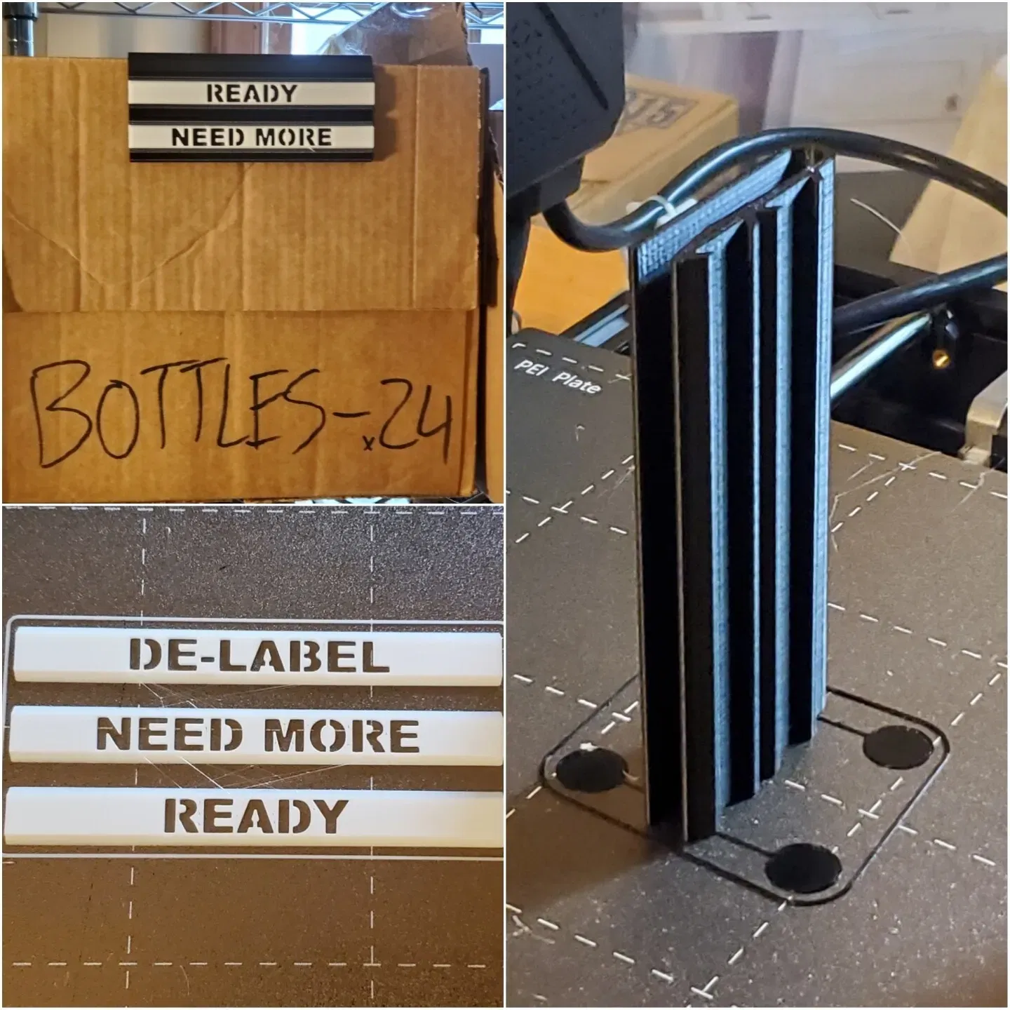 Tôi tự nấu bia, và tôi lấy chai của mình bằng cách gỡ nhãn những thứ tôi mua. Tuy nhiên, tôi thường quên trạng thái của chúng nên tôi đã thiết kế một giá đỡ nhãn của riêng mình với nhãn trượt vào. Hộp bìa cứng giữ chai rất tốt, nhưng chúng thì không trong suốt. Giờ tôi đã biết!