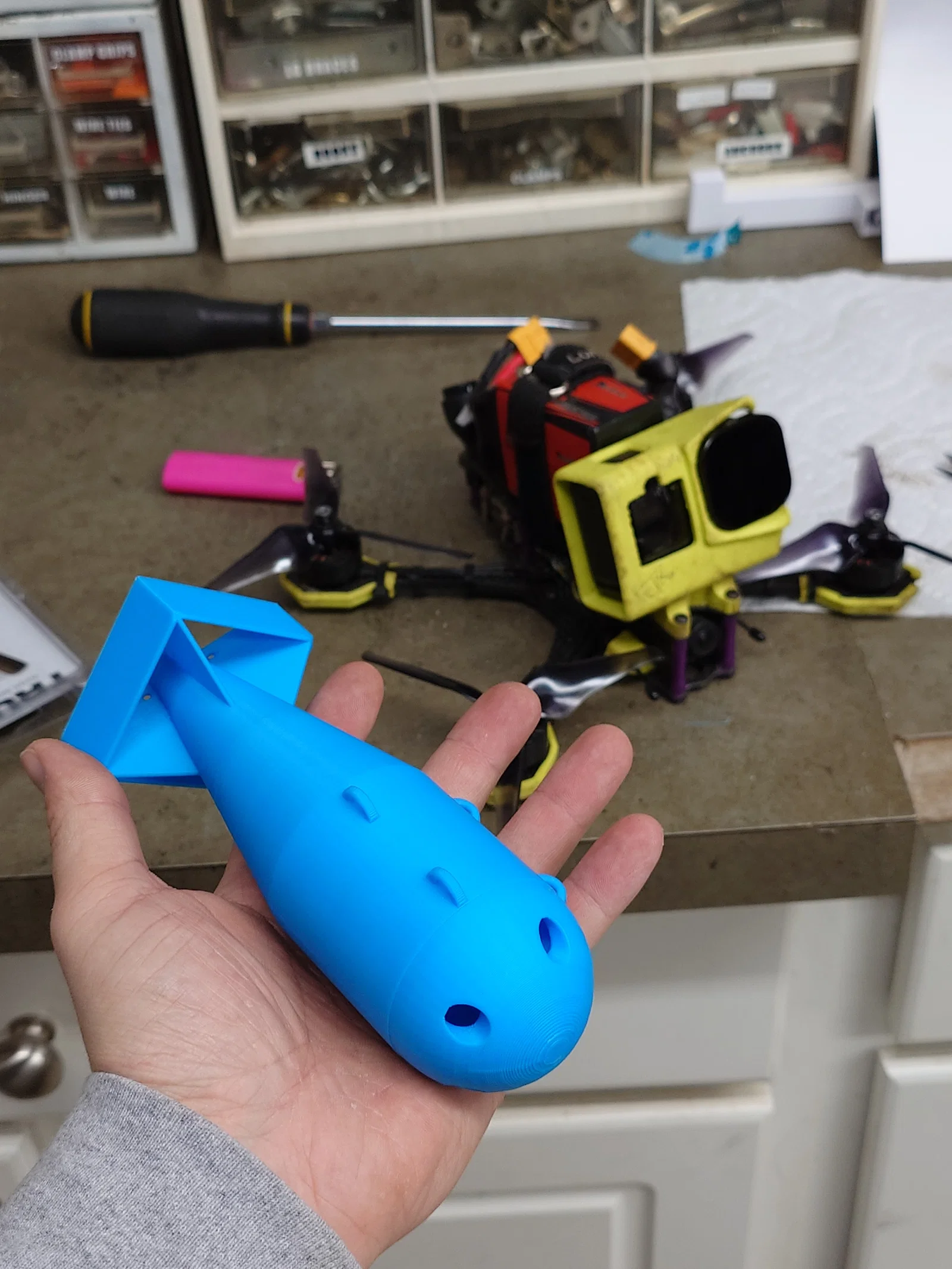 5 buồng còi riêng biệt tạo ra tiếng hú rợn người, trầm thấp khi thả rơi từ máy bay RC hoặc drone. Có thể thay đổi kích thước, cần trọng lượng ở trục trung tâm và hướng về mũi để bay tốt nhất. Lưu ý an toàn khi sử dụng.