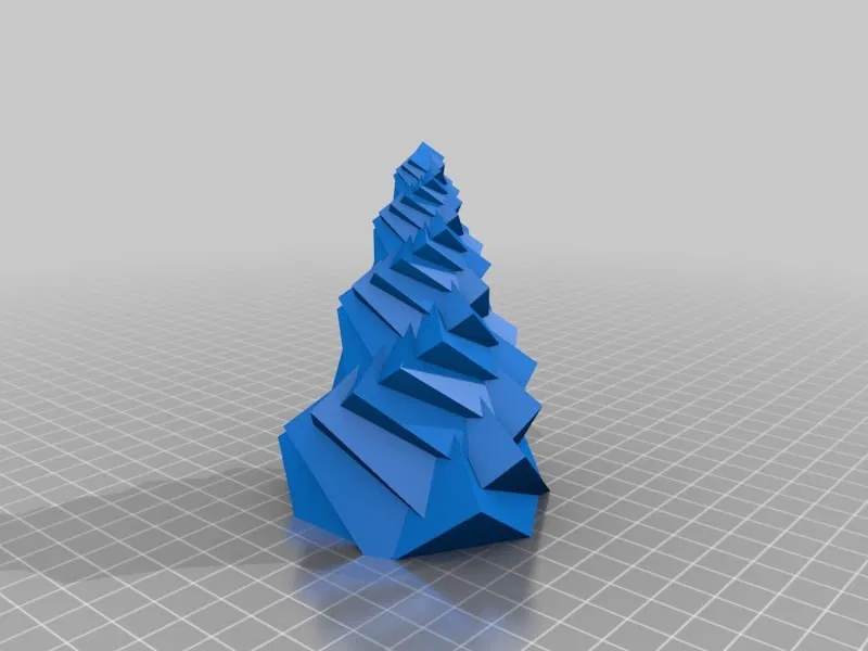 Kiệt tác này được tạo ra bằng cách ghép lại một loạt các khối lập phương đang xoay, giảm dần kích thước và di chuyển lên trên. Tất cả các thông số này đều có thể tùy chỉnh được. Phần đáy được cắt bớt để tạo thành một đế phẳng. Thiết kế này in tốt ở chế độ thường và chế độ lọ hoa (vase mode). Các mô hình in ở chế độ lọ hoa có thể được thắp sáng bằng đèn trà LED sau khi khoan một lỗ ở đáy. #### Xem các mô hình Giáng sinh khác của tôi. #### Các thiết kế xoắn ốc (chế độ lọ hoa) khác mà tôi đã thực hiện.