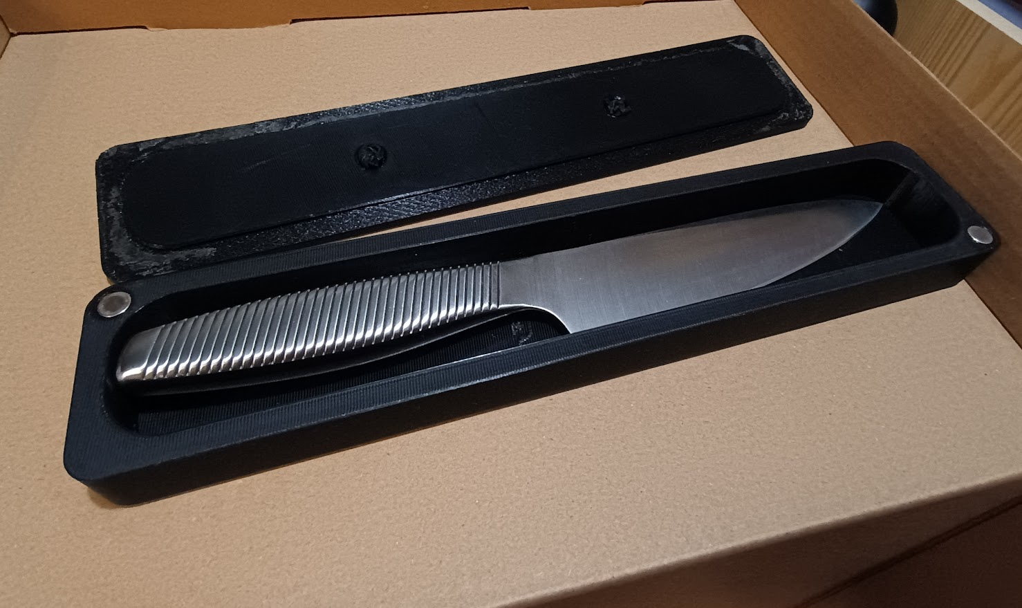 Một cái hộp vui vui cho dao bếp hay đồ dùng nhà bếp khác, đặc biệt là cho các fan MasterChef. Hộp có thể đóng bằng nam châm, bạn chỉ cần in đổi màu ở lớp cuối để nhét nam châm vào là xong.